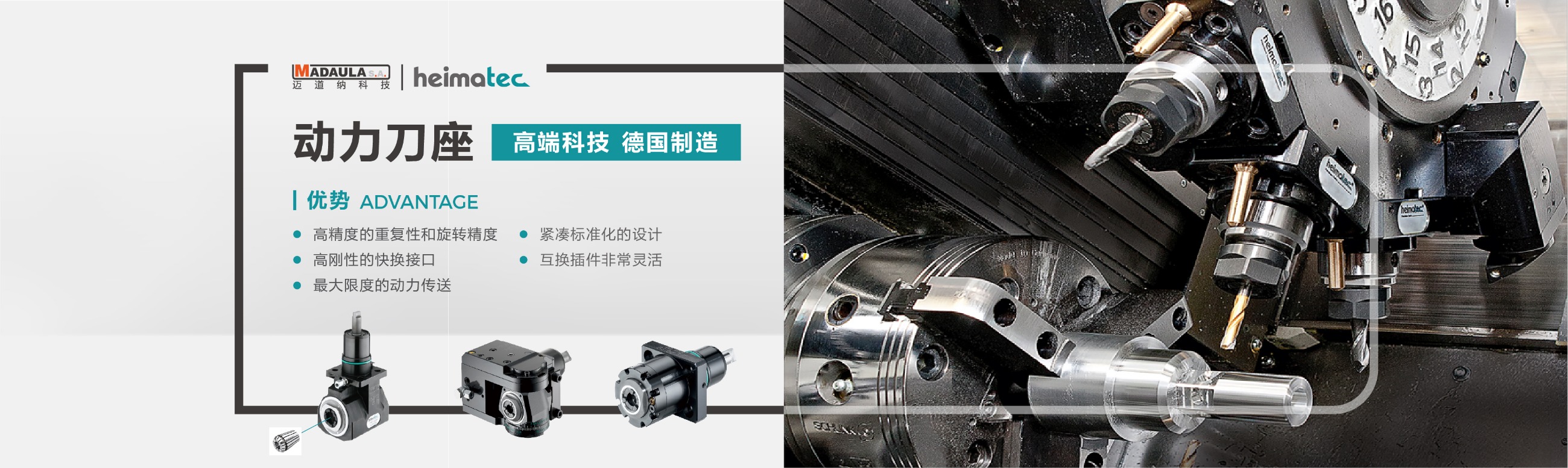 德國heimatec · 動力刀座 -- 品質(zhì)可靠、經(jīng)久耐用、可以不間段連續(xù)工作; -- 全球各大機(jī)床廠家標(biāo)配產(chǎn)品